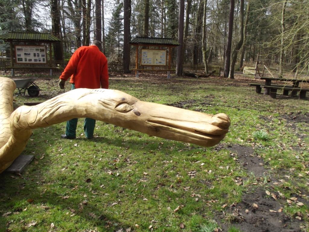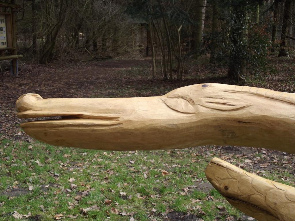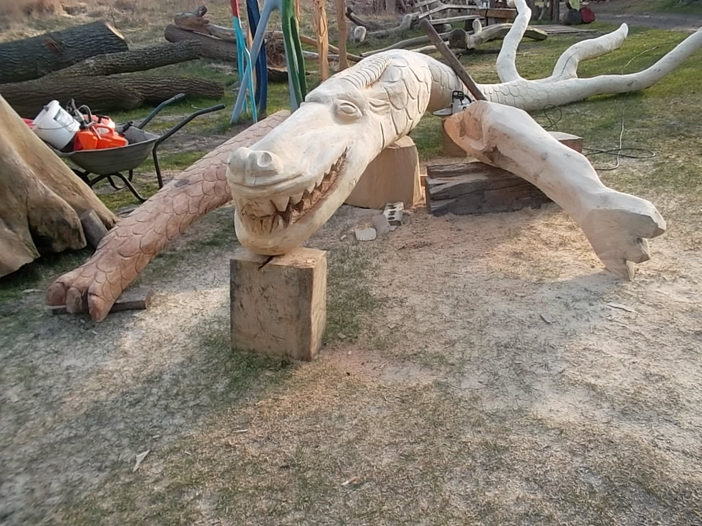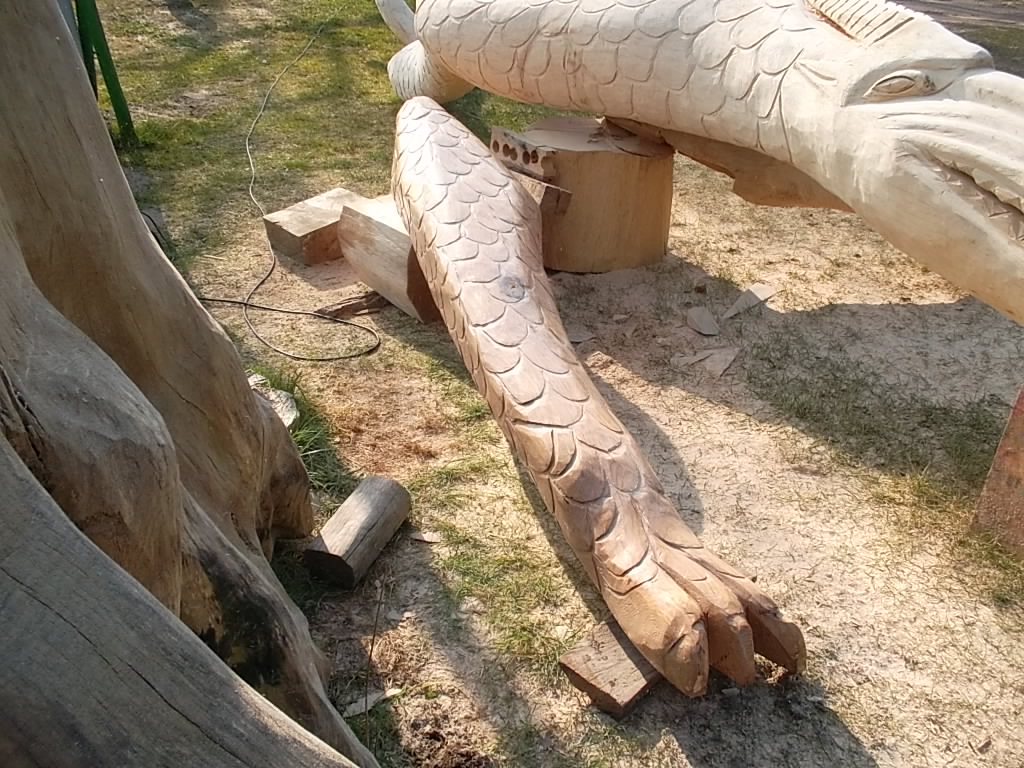 Das rechte Vorderbein geschuppt. geschliffen und lasiert,