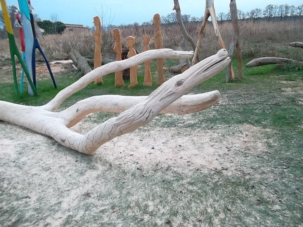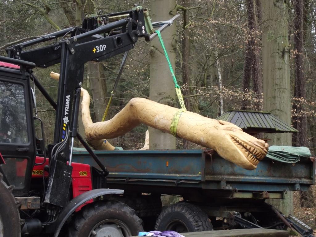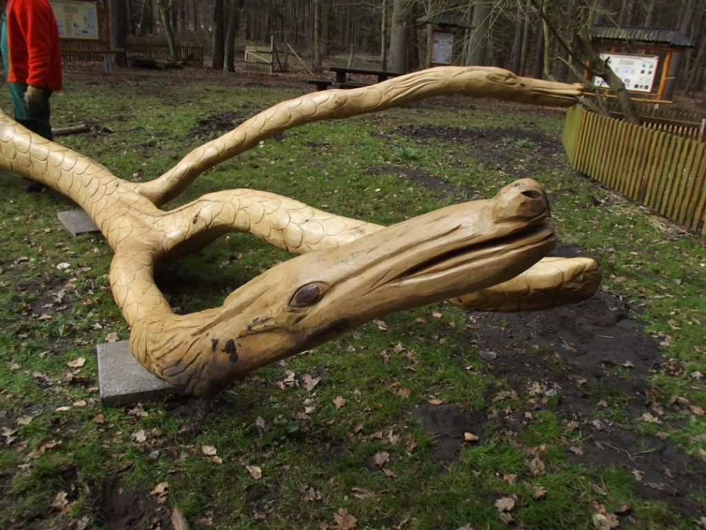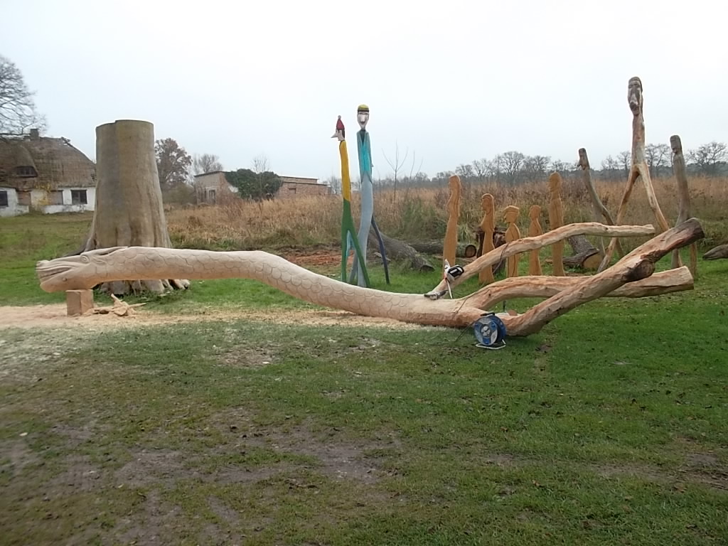 Das rechte Vorderbein geschuppt. geschliffen und lasiert,